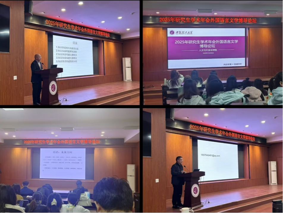 2025年10月30日下午,西安外国语大学“西外学者”、西京学院特聘教授汪顺玉教授应邀在人文与外国语学院模拟法庭开展题为《人文社会科学自主知识体系构建:概念、技术与应用》的学术报告。本次报告由黄勇副院长主持,学院语言专业老师和研究生同学到场学习,现场学术氛围浓厚。