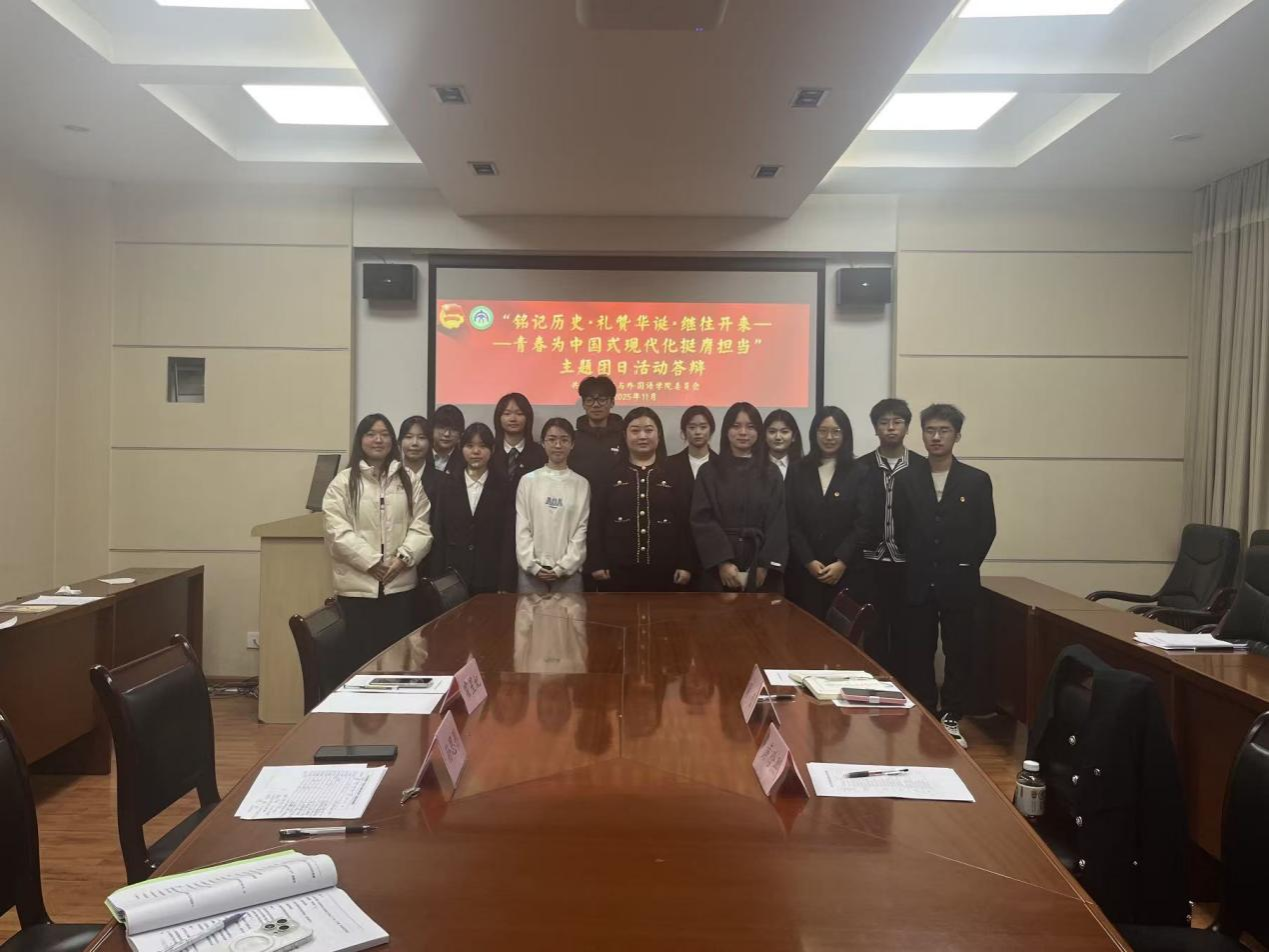 为深入学习贯彻党的二十大及二十届三中、四中全会精神,推动团员和青年主题教育走深走实,11月19日晚,人文与外国语学院在教十一楼201会议室举办“铭记历史・礼赞华诞・继往开来——青春为中国式现代化挺膺担当”主题团日活动总结答辩会。本次答辩会邀请学院团委书记周莹、理学院团委副书记霍星妃、学院团委副书记黄晗熙、孙思彤担任评委,对各团支部工作进行综合评审。