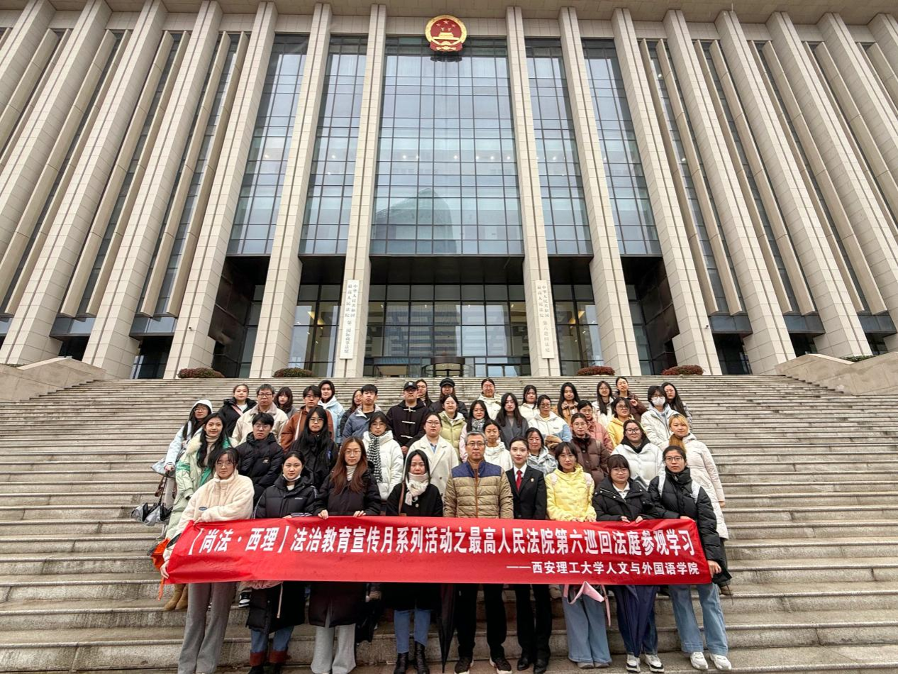 为响应新时代法治人才培养要求,推动法学教育与实践深度融合,深化学生对中国特色社会主义司法制度与历史沿革的理解,12月12日,人文与外国语学院30余名师生在法律系张维文、闵浩两位老师的带领下,赴最高人民法院第六巡回法庭开展“法治教育宣传月”系列实践学习活动。