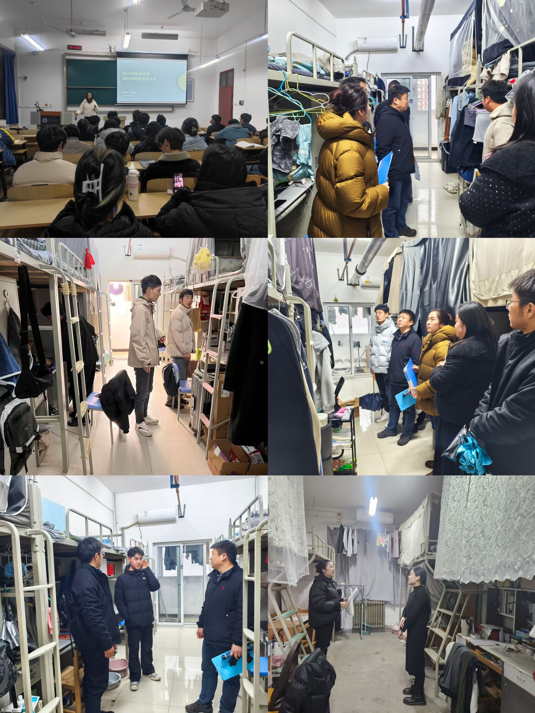 赵玉强副书记主持召开节前安全专题会议,传达了学校关于做好元旦假期学生教育管理工作要求,对假期安全工作进行了全面部署,要求辅导员精准掌握学生去向,关心关爱重点学生群体,节假日期间要严格落实值班备勤制度,做到即时响应,有特殊情况及时上报。各年级辅导员开展了安全主题教育,教育内容涉及网络安全、消防安全、交通安全、饮食安全等,以此提升学生的防范能力。辅导员老师们深入学生宿舍,开展宿舍用水用电安全和卫生隐患排查,逐一走访并对发现的安全隐患进行现场整改。