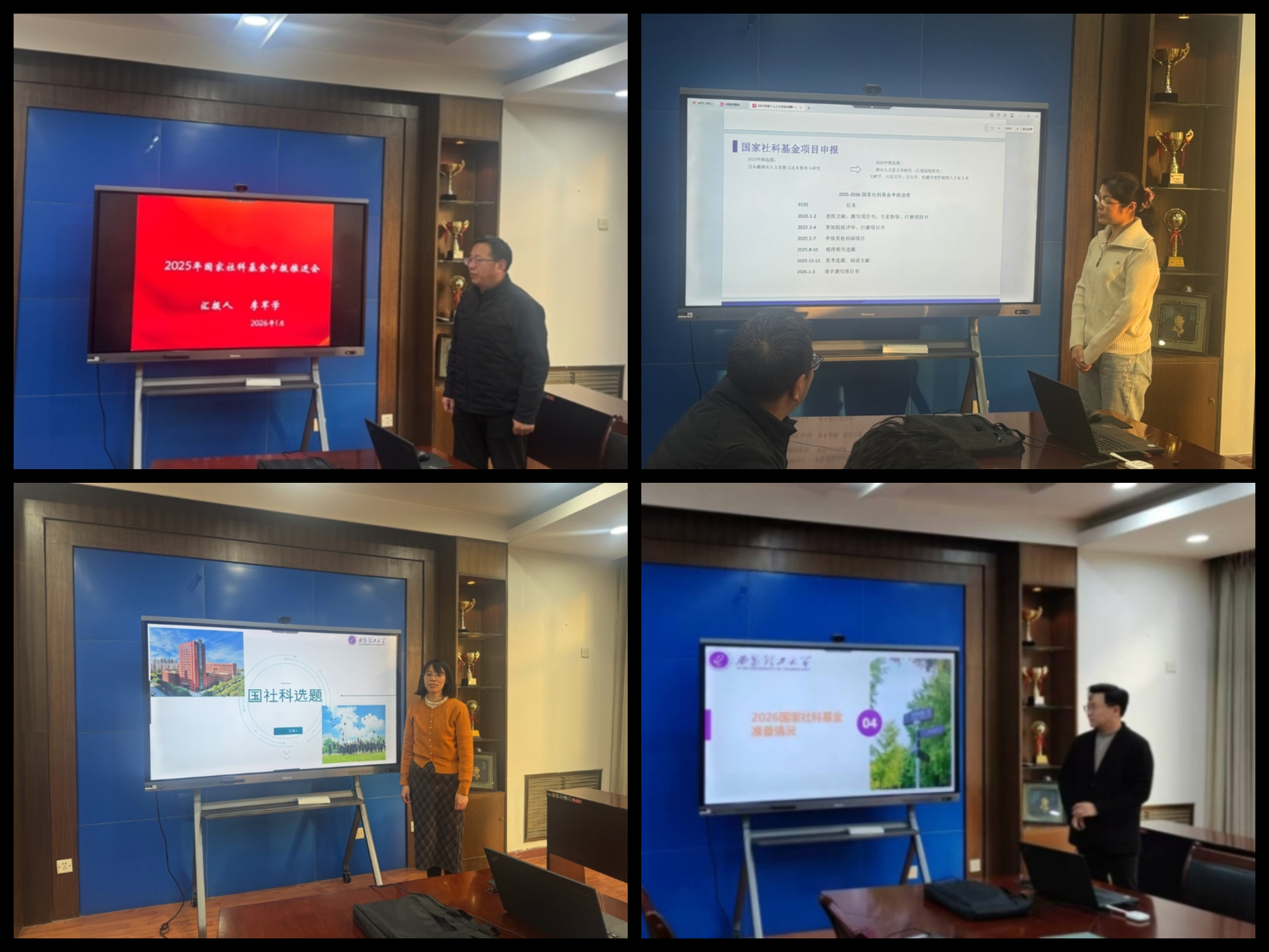 最后,在国社科选题论证汇报环节,中文系四位博士教师分别围绕各自国社科选题的研究背景、核心框架、学术价值及推进计划进行了阐述。黄勇副院长结合学科发展趋势与国社科申报要求,对每个选题逐一进行精准点评与专业指导,既肯定了选题的理论深度与现实意义,也针对性地提出了优化研究视角、完善论证逻辑的合理化建议。李军学老师结合学校新近出台的科研政策以及国家基金与教育部基金的申报要求做了详细解读,号召各位老师充分利用寒假,倾力课题申报工作,力争在年度标志性科研成果申报方面取得突破。各位博士教师认真聆听、积极回应,在场教师也围绕选题各抒己见、建言献策,展开热烈研讨,现场气氛活跃。