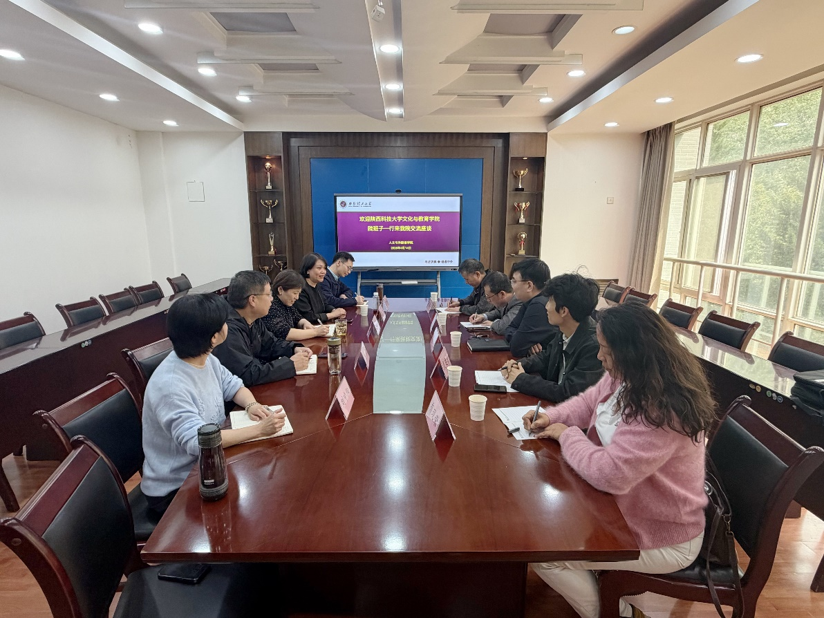 4 月 14 日下午,陕西科技大学文化与教育学院党委书记李红坦、院长邵亮一行5人来我院调研交流。学院党委书记李红英、院长张洁及院班子成员参加座谈交流。